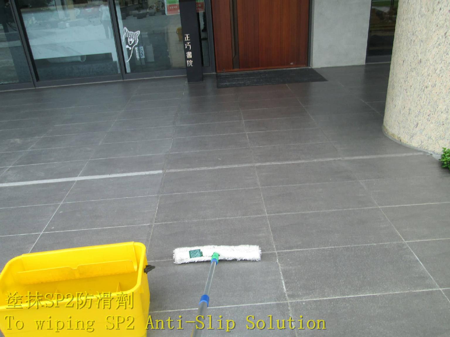 止滑大師 1408 餐廳 咖啡廳 入口 仿岩板 粗糙面花崗石地面止滑防滑施工工程 相片