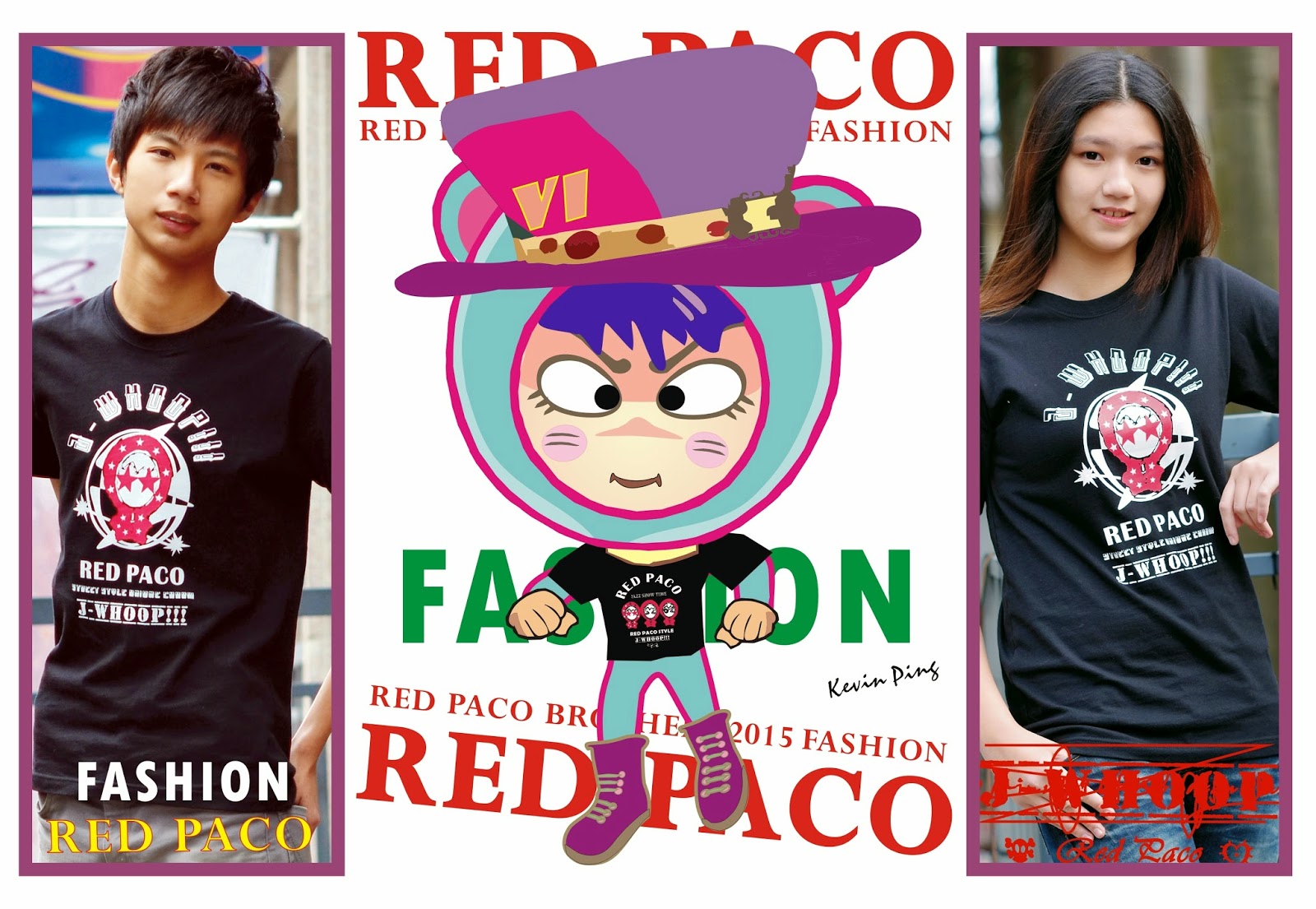 介紹KEVIN PING設計的潮T及時尚海報,VIVI PACO 化身超級Model代言red paco限量潮T