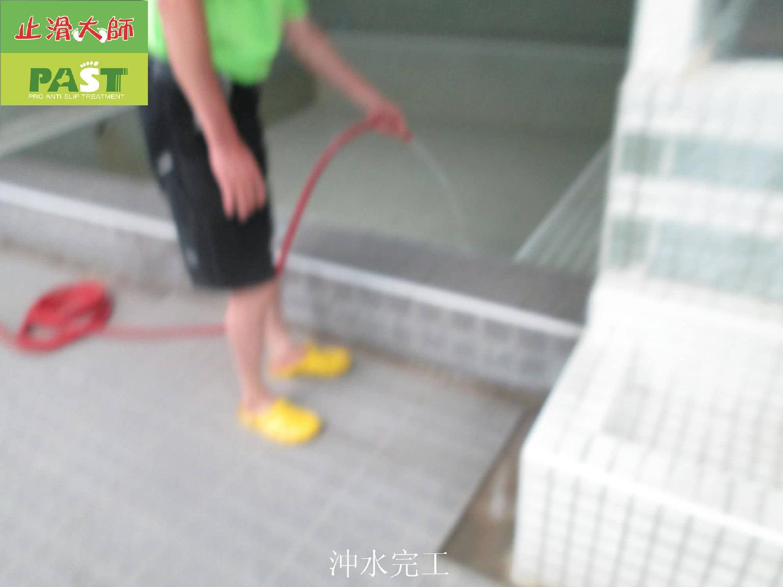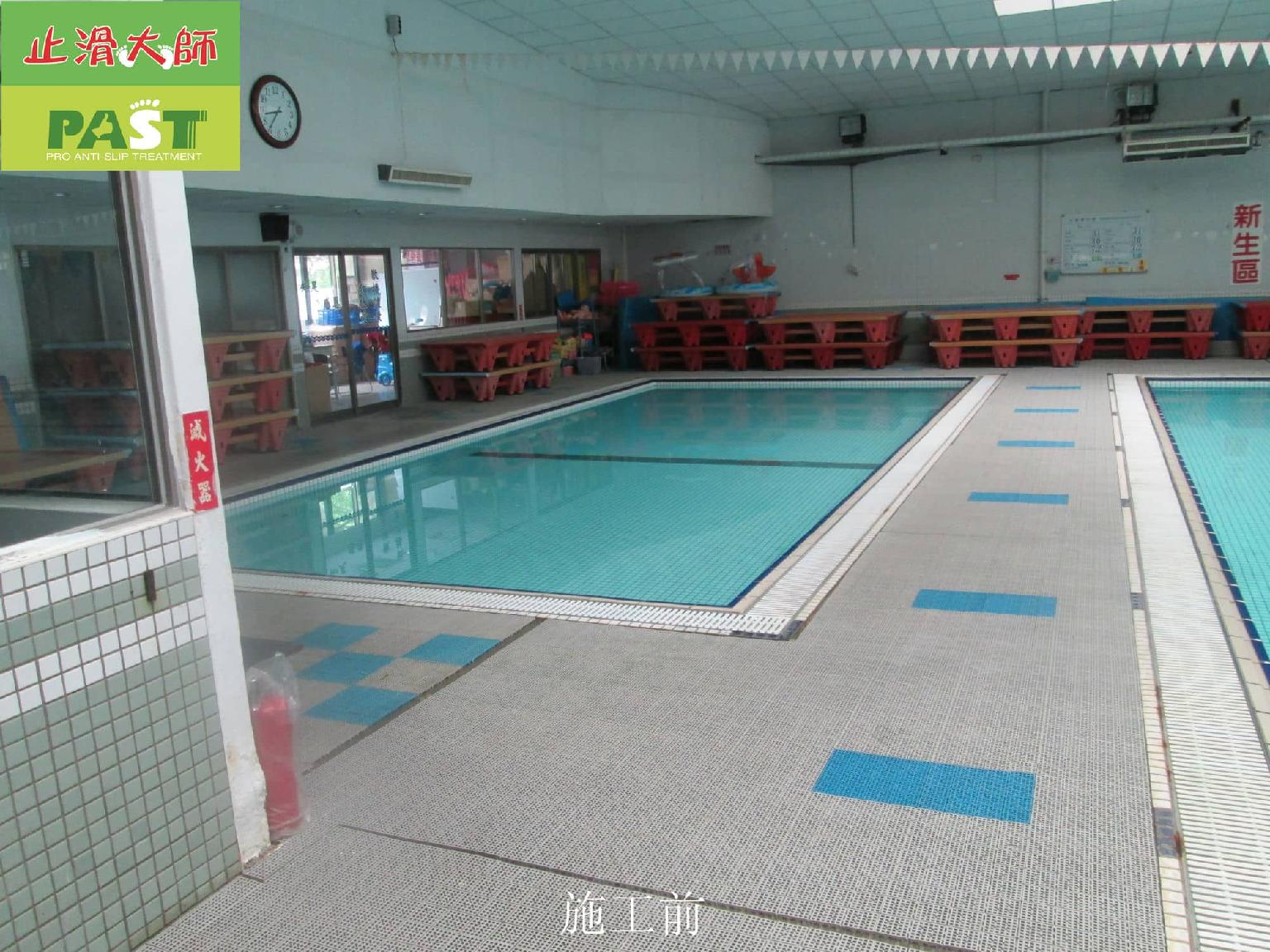 止滑大師 417 中部游泳學校 泳池周邊 超高硬度磁磚 泡湯池臺階 高硬度小磁磚止滑防滑施工工程 相片