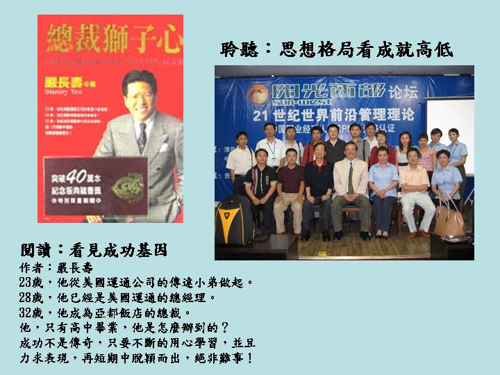 當你把夢想變成事實,你就會想把那個變化,構築得愈來愈大,大企業的形成就是如此。---王易簡
